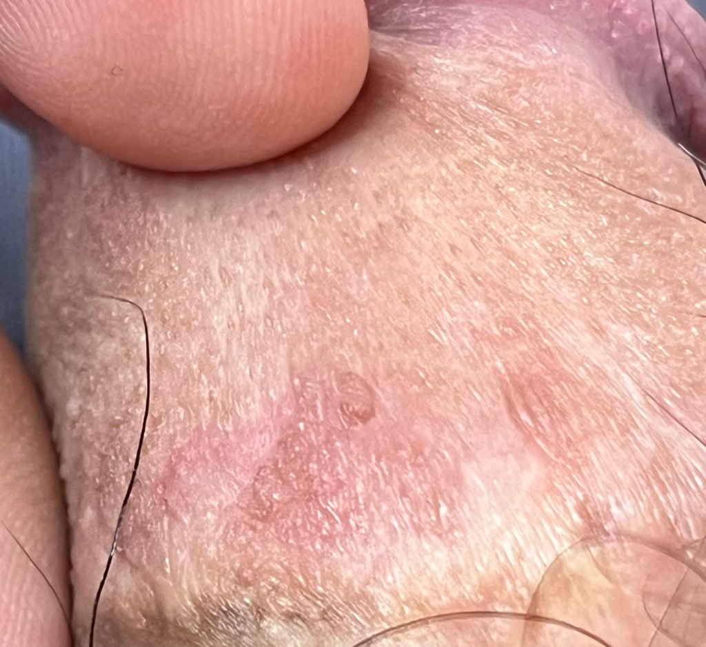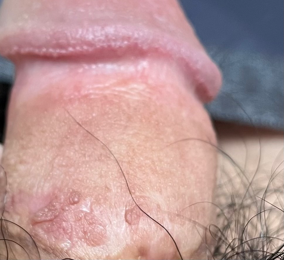 곤지름은 거의 대부분이 성적인 접촉을 통해서 전파가 되지만 반드시 성적 접촉을 통해서만 전파되는 것은 아닙니다. 즉, 가능성이 매우 낮아 보이긴 하지만 사진 속의 병변이 곤지름일 가능성이 존재하긴 합니다. 그냥 방치하여보았자 좋아질 것은 없으므로 피부과에서 관련하여서 확실하게 감별 진단을 받아보시는 것을 권고드립니다.