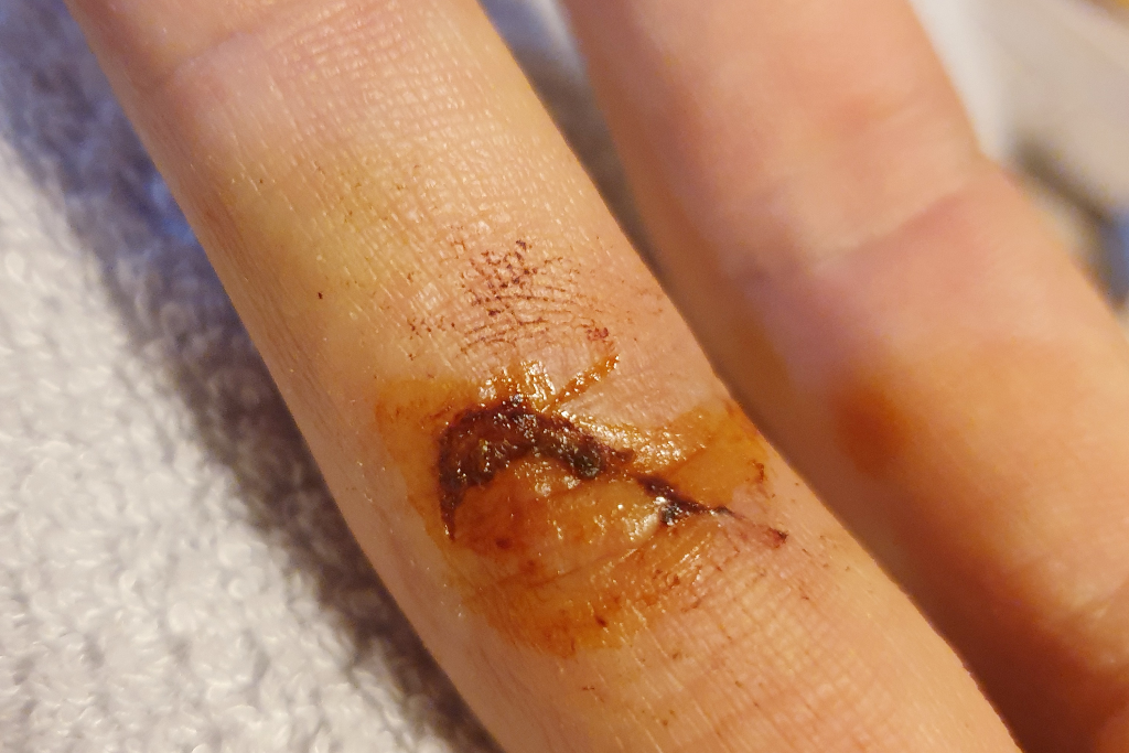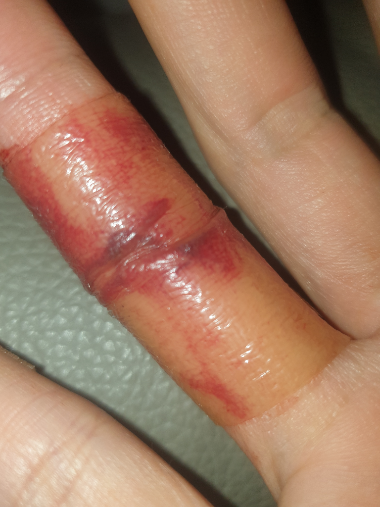 집에있던 메디폼으로 손가락을 둘러 지혈을 하였습니다.