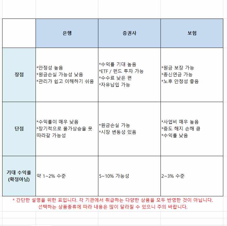 50대 여성 입니다 개인 연금 가입 하려구 합니다 은행 증권사 보험 세군데 중 추천부탁드릭니다 세군데 장점 단점 에 대해서 알고싶습니다