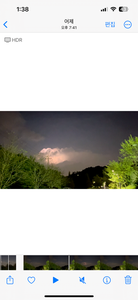 어제 운동하는 길에 천둥소리는 안나고 번쩍 ! 하듯이 구름에서 이런 현상이 나오더라구요...