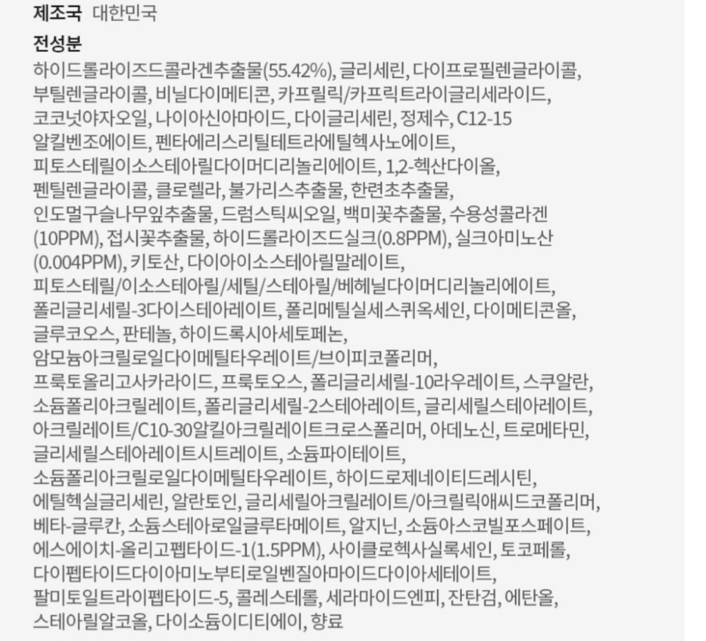두제품의 성분을 보면 위제품의 성분이 월등히 많고 아래 제품은 현저히 적네요.