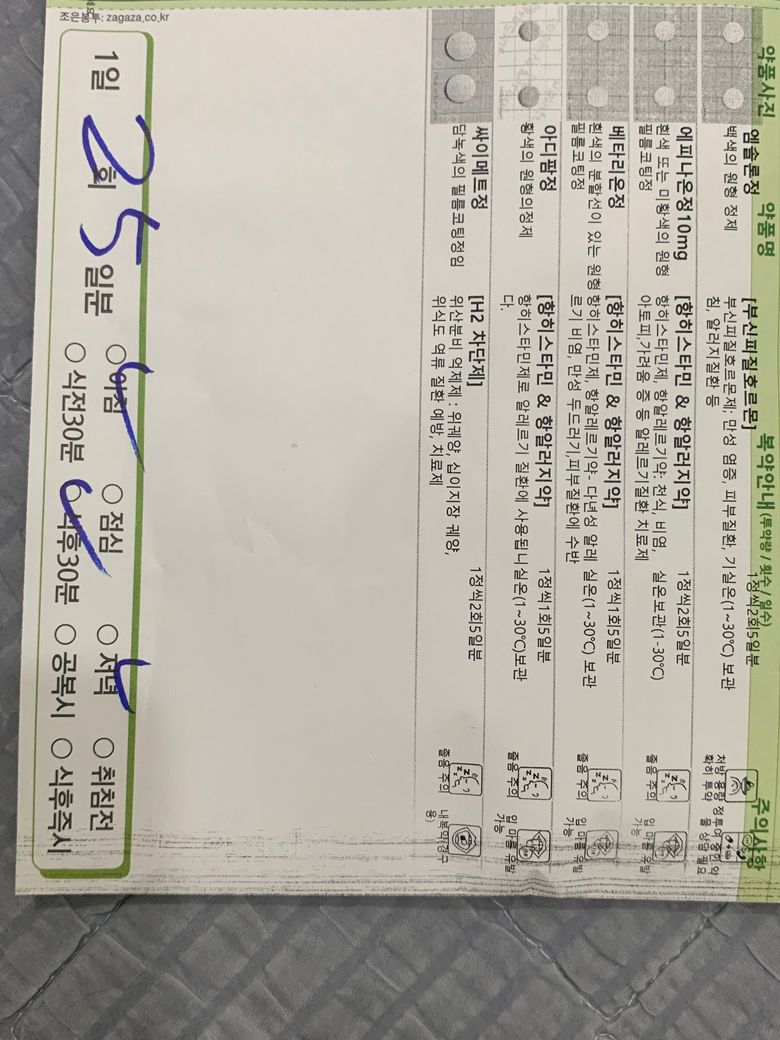 처방받으신 피부과약에 항히스타민제가 3종류로 충분히 포함되어있기에 코메키나와 병용시 졸음,구갈뿐만 아니라 항콜린작용에 의한 비뇨기게,소화기계,안과영역의 부작용 우려가 있습니다.
