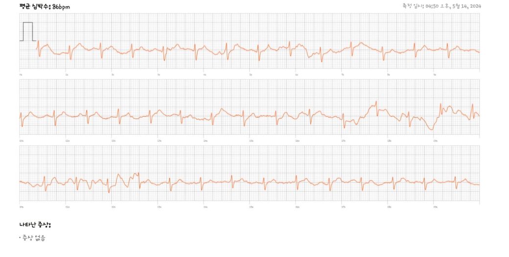 워치 심전도는 정확도가 떨어지며 리듬이 많이 흔들려서 확인이 어렵습니다.