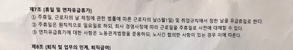 계약서 7조에 따르면 주휴일이기에 유급휴가고, 이에 따라 재택근무여도 (시간 산정 가능) 해당 근무에 대한 추가 수당이나 대체 휴가를 받을 수 있는 것이 아닌지 여쭙고자 합니다.
