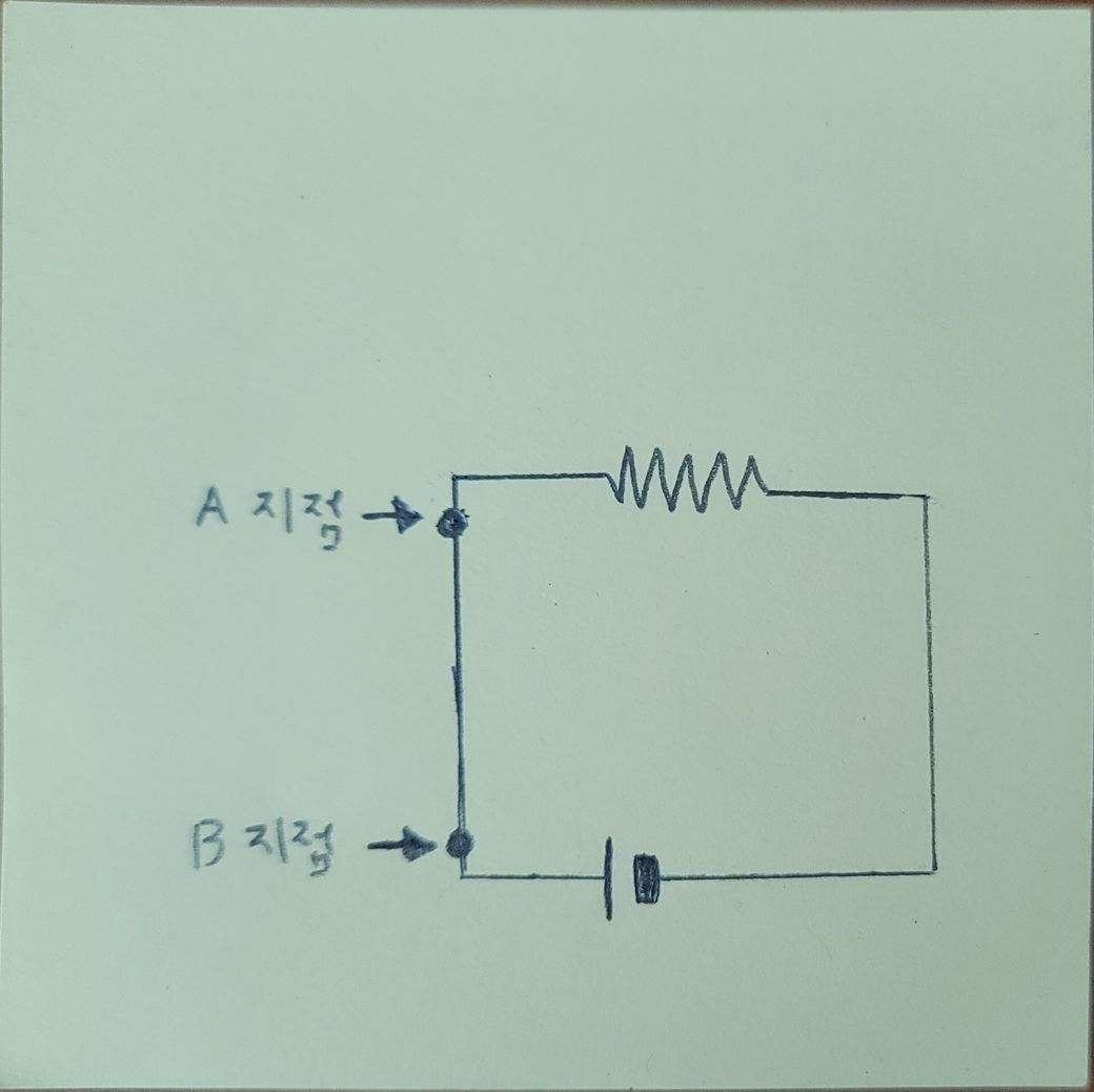 5.A지점과 B지점에도 전류가 흐를 것이니 전위치가 존재한다. 3번과 연결하면 B지점의 전위가 A지점의 전위 보다 높다.