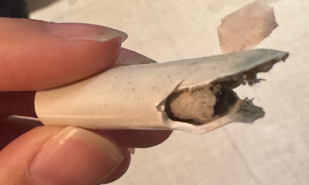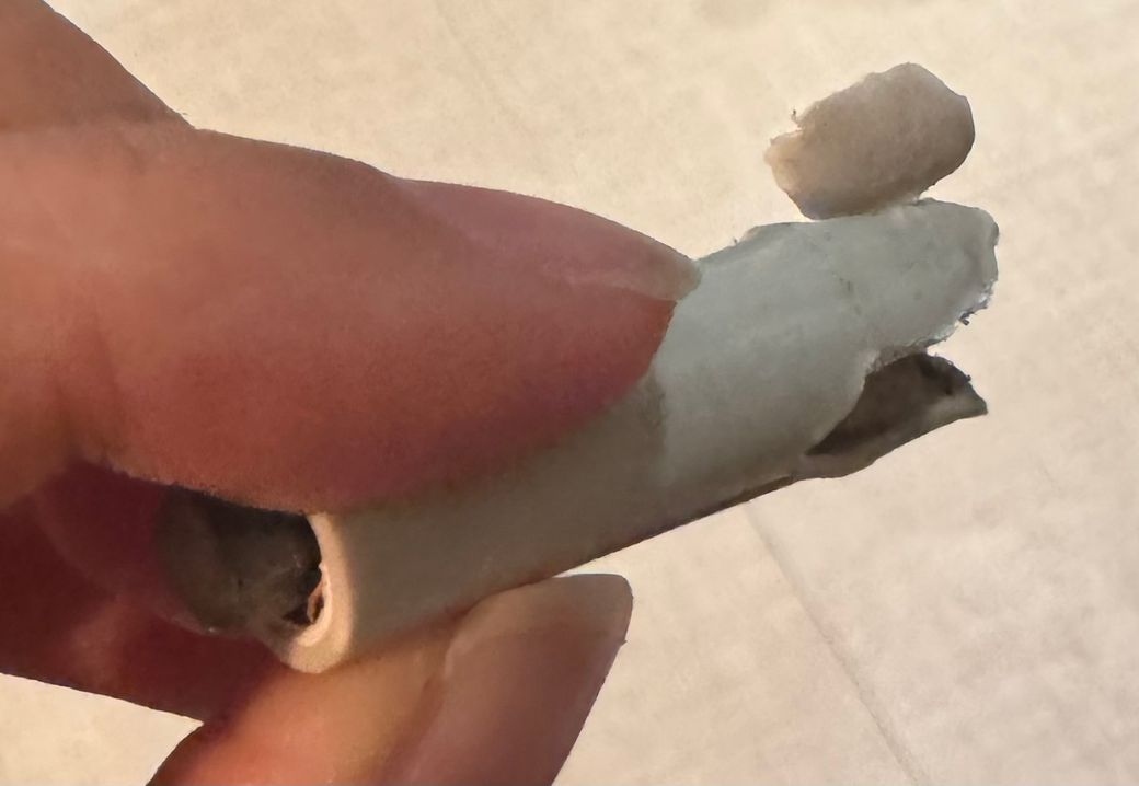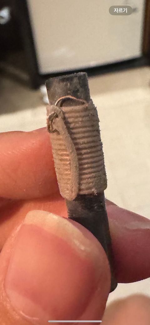 가운에서 사진과 같은 물건을 발견했는데 뭔지를 모르겠네요. 원래는 건전지 같은 모양을 하고 있었는데 안을 보니 막대같은게 있었습니다