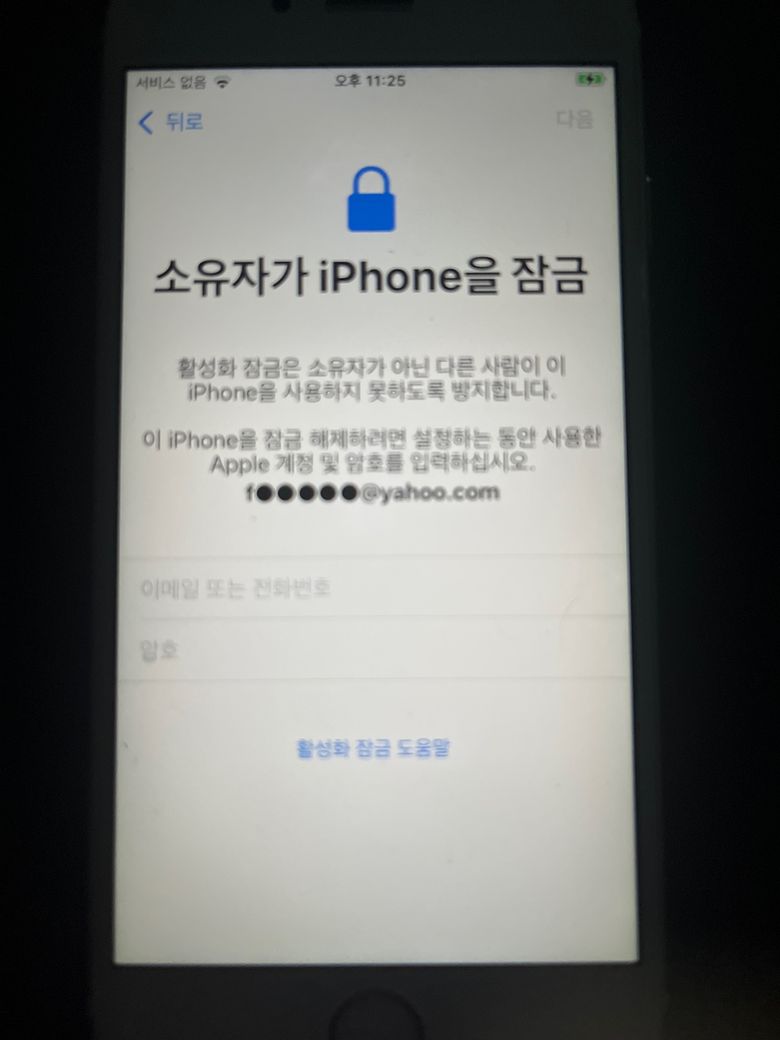 소유자가 아이폰을 잠금이라고 뜸니다