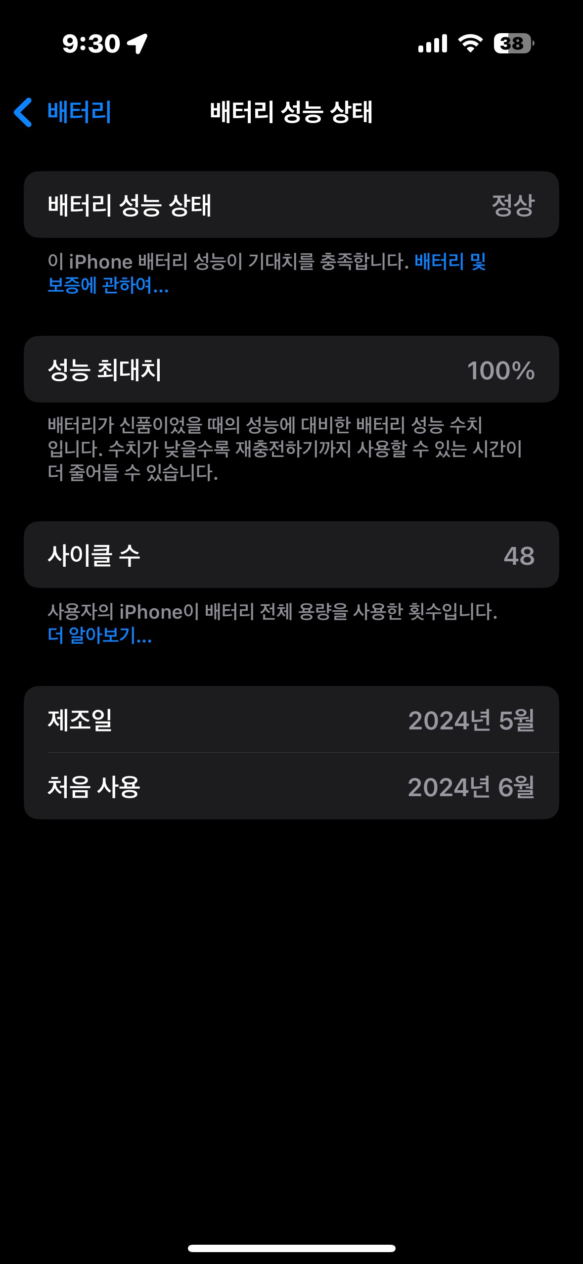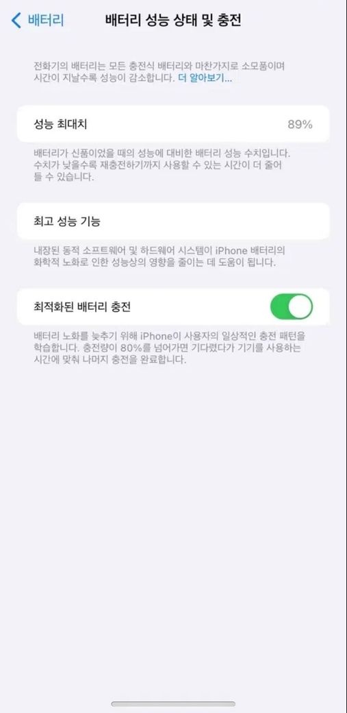 다른 아이폰15PRO 판매자들의 배터리 성능 상태 화면에는 사이클 수, 최초 개통일 등등이 나와있던데