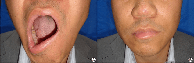 울음/웃음 등으로 입을 벌릴때 증상이 뚜렷합니다.