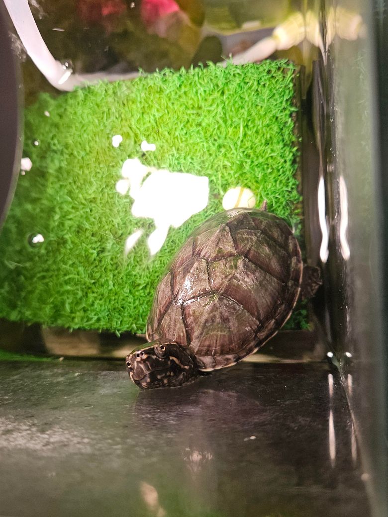 제가 아는 분께 거북이를 받아 키우게 되었습니다. 아직 초보 집사인데, 거북이 종도 제대로 듣지 못해서ㅠ 궁금해 여쭤봅니다! 아마 커먼머스크 아닐까 싶은데 맞는지 알려주세요. 크기는 8-10cm정도..? 제 손바닥 반만 합니다! 쪼꼬매요