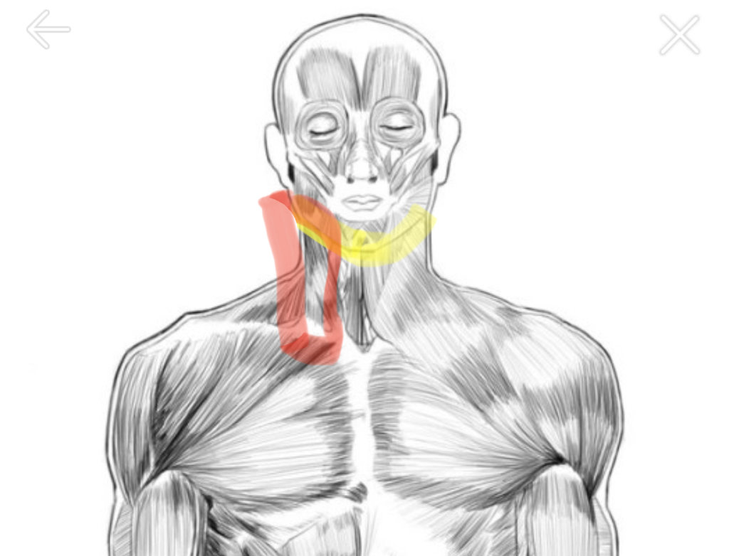 빨간색- 현재 증상이 있는 부분입니다.(왼쪽 턱 밑, 옆 목~ 쇄골 위)