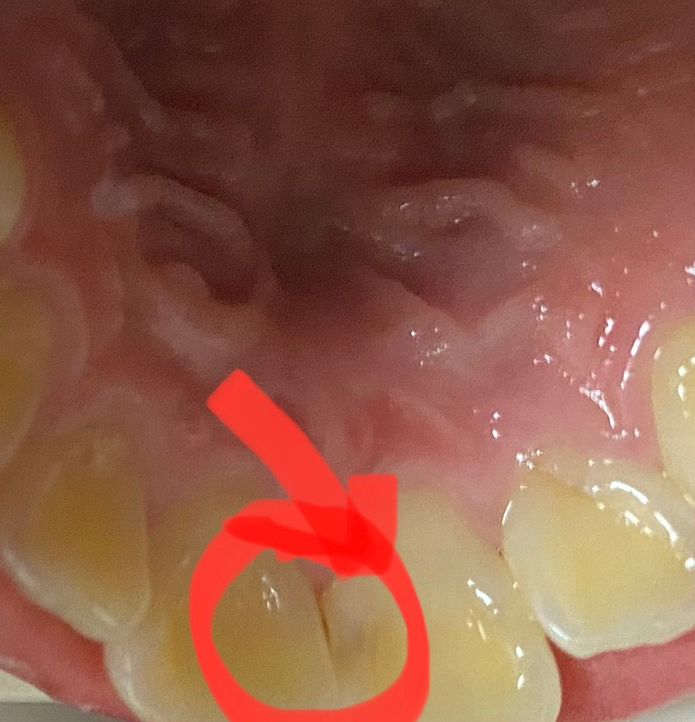 앞니 사이에 멍든것과 같은 어두운 색이 있다면 충치가 생겼을 가능성이 높습니다.