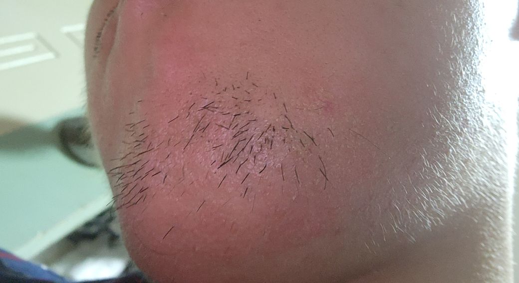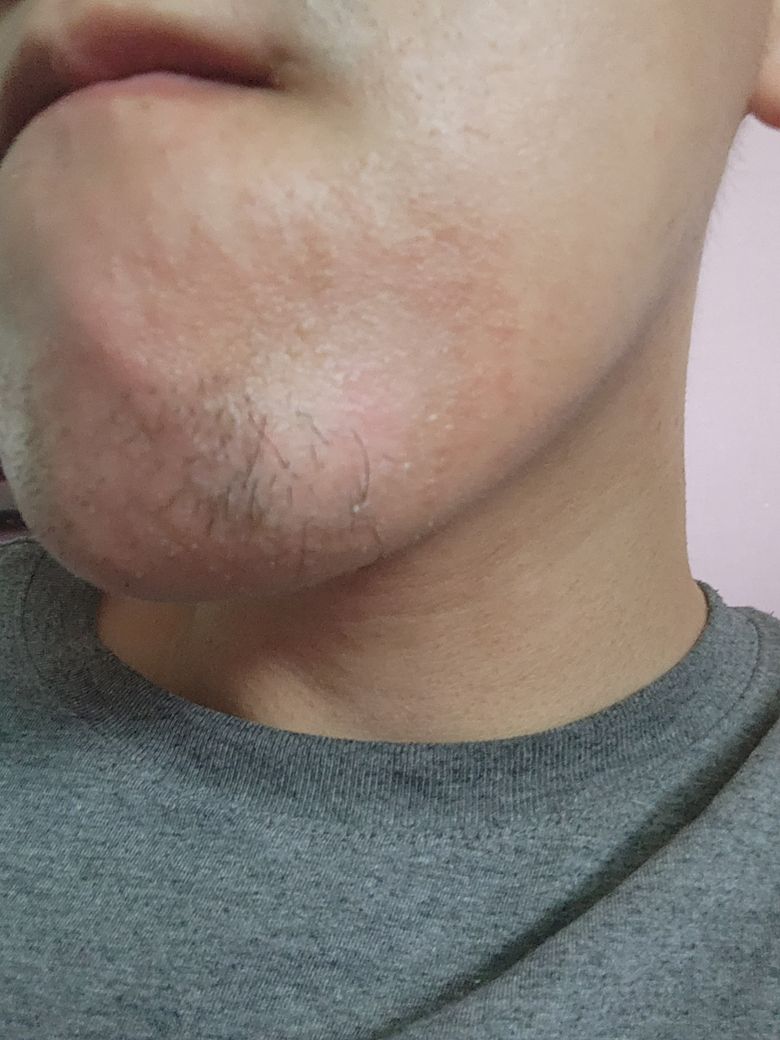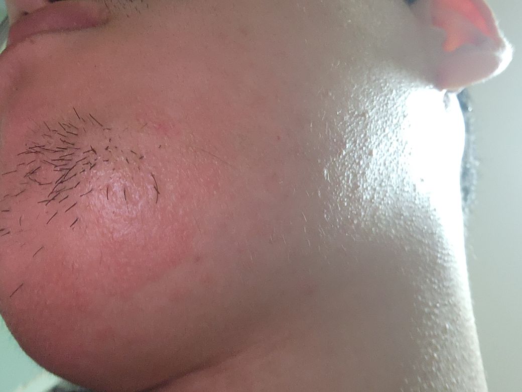턱에 상처나고 샴푸가 몇번 닿았었는데 위 사진이 초기 상태이며 상처 주변 피부가 따갑고 간지럽고 만졌을때 건선 각질?상처 나고 딱지 진거마냥 까끌까끌해서 병원에 갔는데 접촉성 피부염 같다고 해서 베로아 크림을 처방받고 발라줬는데 하루 지나니까 따갑고 간지럽고 딱지 진거같은게 나아졌습니다.