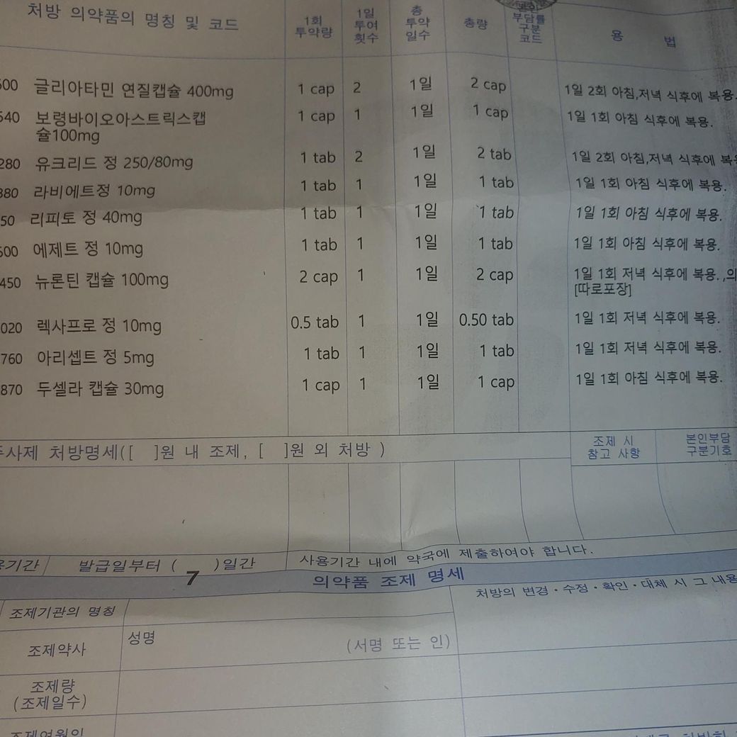 처방약중에 안되는게 있는지 봐주시면 감사하겠습니다