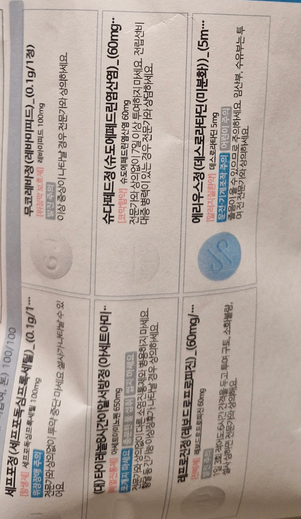 질문2) 이게 저번알레르기직전에먹은감기약.