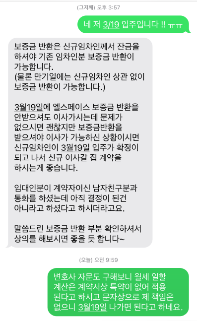 본인이 한 말은 3/17~3/19에 새로운 임차인이 들어오면이라는 뜻이었고