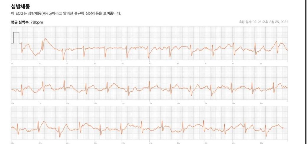 갤럭시워치로 ecg를 검사했는데 심방세동이 나왔습니다