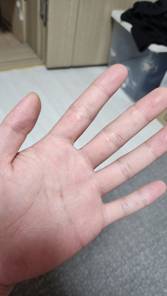 3~4일 전에 오른손을 시작으로 왼손까지 붉은 반점? 물집이 생기고 있는데 이게 뭘까요? 누르면 살짝 통증이 있고 가렵지는 않아요..