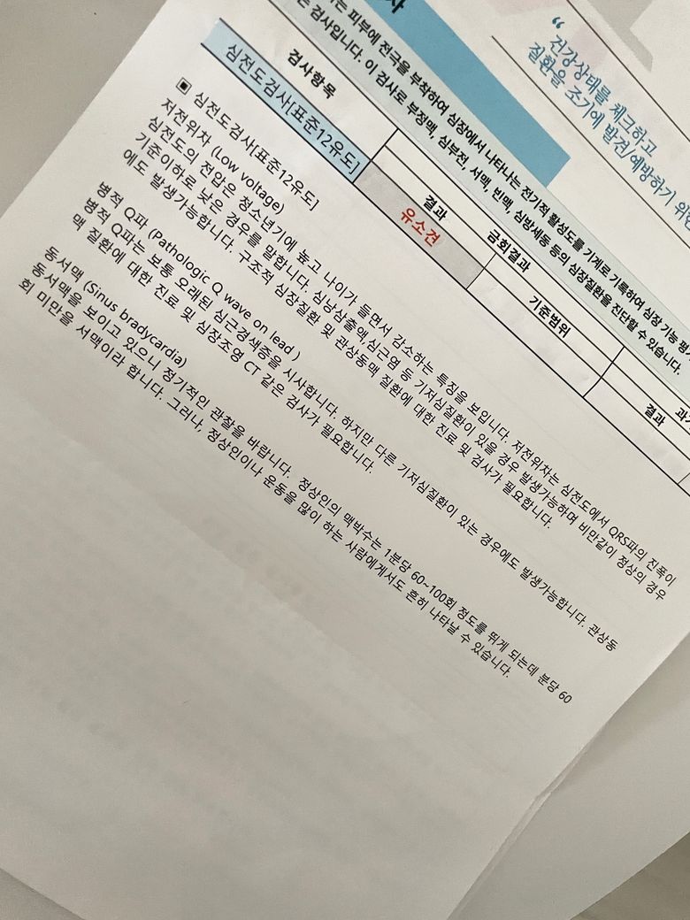 건강검진 하면서 찍은 심전도에 이상소견으로 추가 검진 및 진료가 필요하다고 하는데
