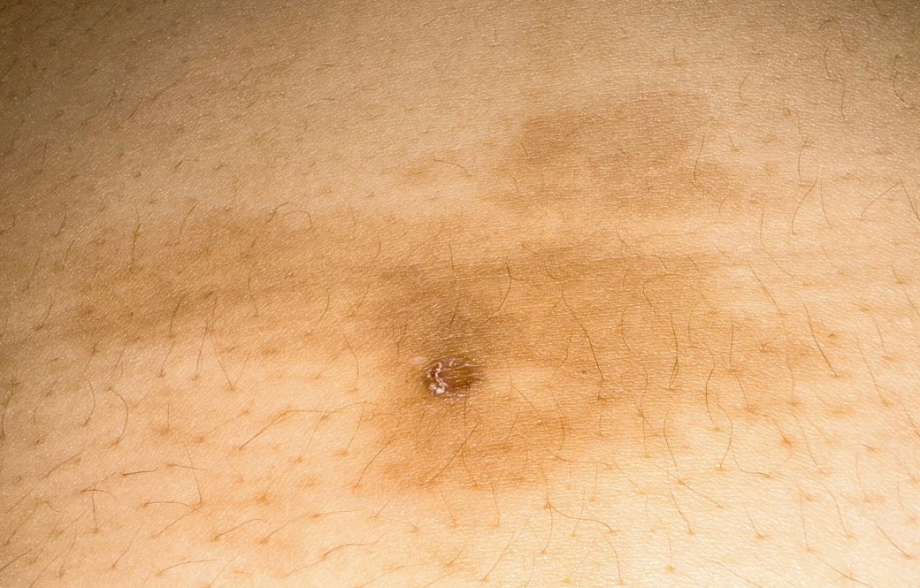 배에 생겼습니다. 가렵진 않고요, 원래 색소 침착만 있었는데 어느날 딱지까지 생기더니 연고를 아무리 발라도 안 사라집니다. 몇 년째 이러고 있고요, 어루러기? 그런거랑은 또 달라보이는데 대체 뭘까요?