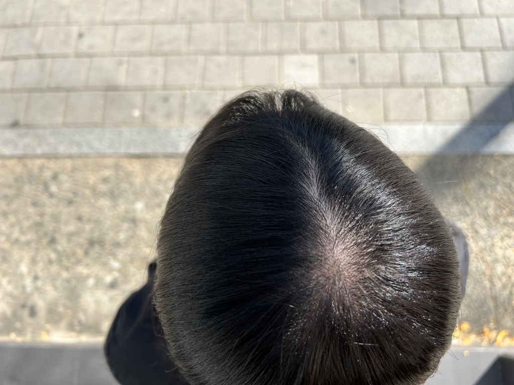 정수리 부위의 머리카락이 가늘어지고, 힘이 없어진다.