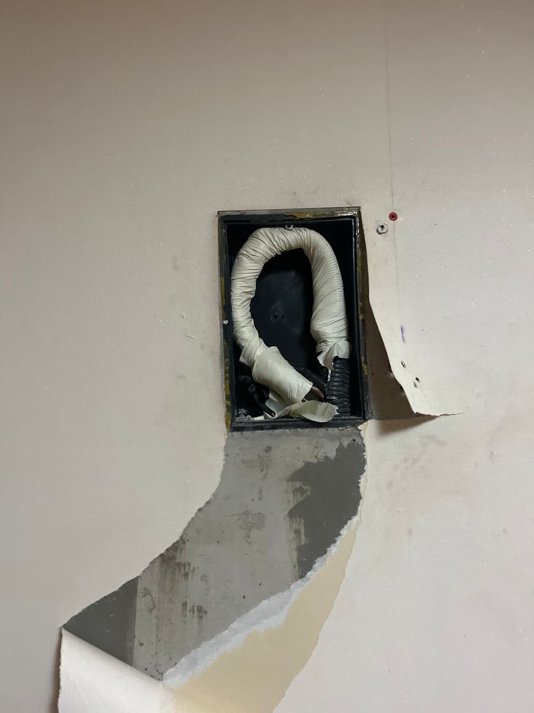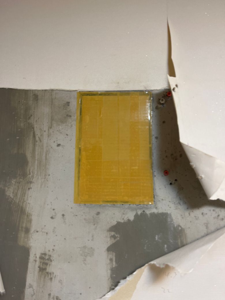 아파트 매수하면서, 기존에 있던 벽걸이 배관 단자함을 사진과 같이 박스와 테이프로 마감 후 시스템 에어컨으로 새로 배관설치를 하였고, 사진과 같이 벽지에 물 자국이 생겼습니다. 사용하지 않는 배관인데 저기로 결로로 인한 누수가 발생할 수가 있나요?