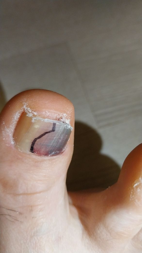 발톱이 저렇게 변했어요. 3월에도 사진을 찍었었는데 저 정도까지는 아니었는데 오늘 보니까 저렇게 변했네요. 통증 없고 어디 부딪힌 적도 없습니다. 흑색종일 가능성이 있을까요?