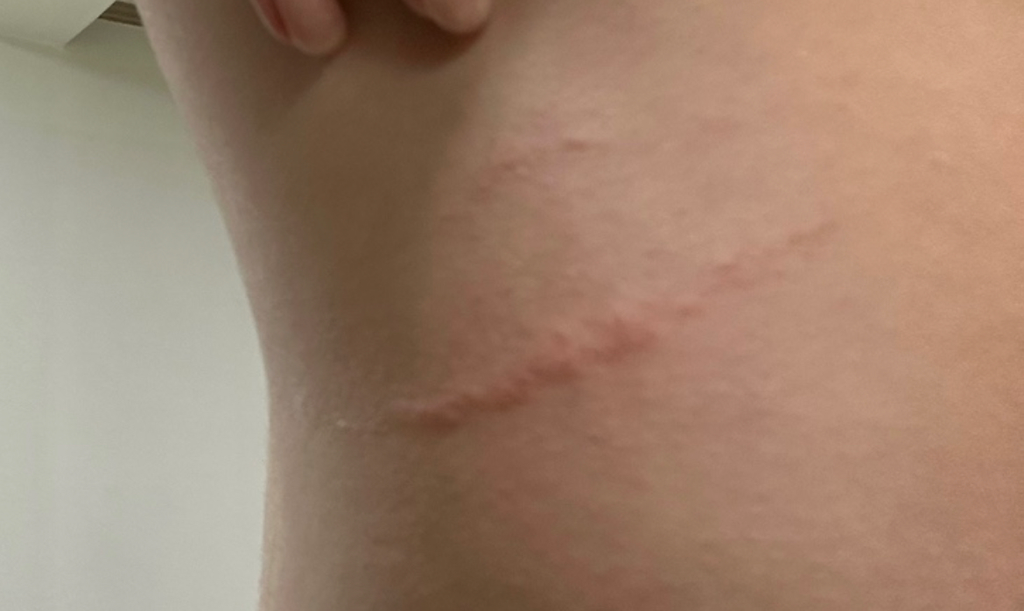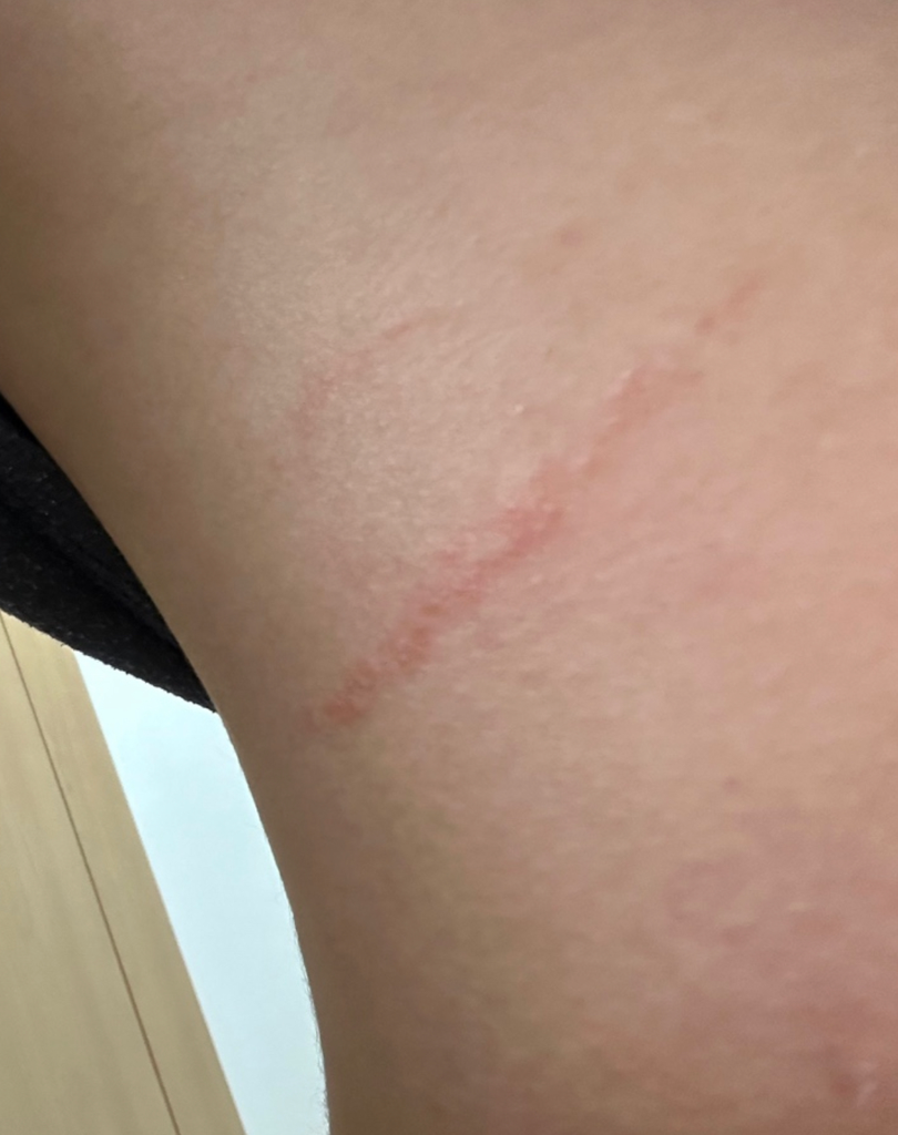 두드러기나 긁힌 자국으로 보입니다.
