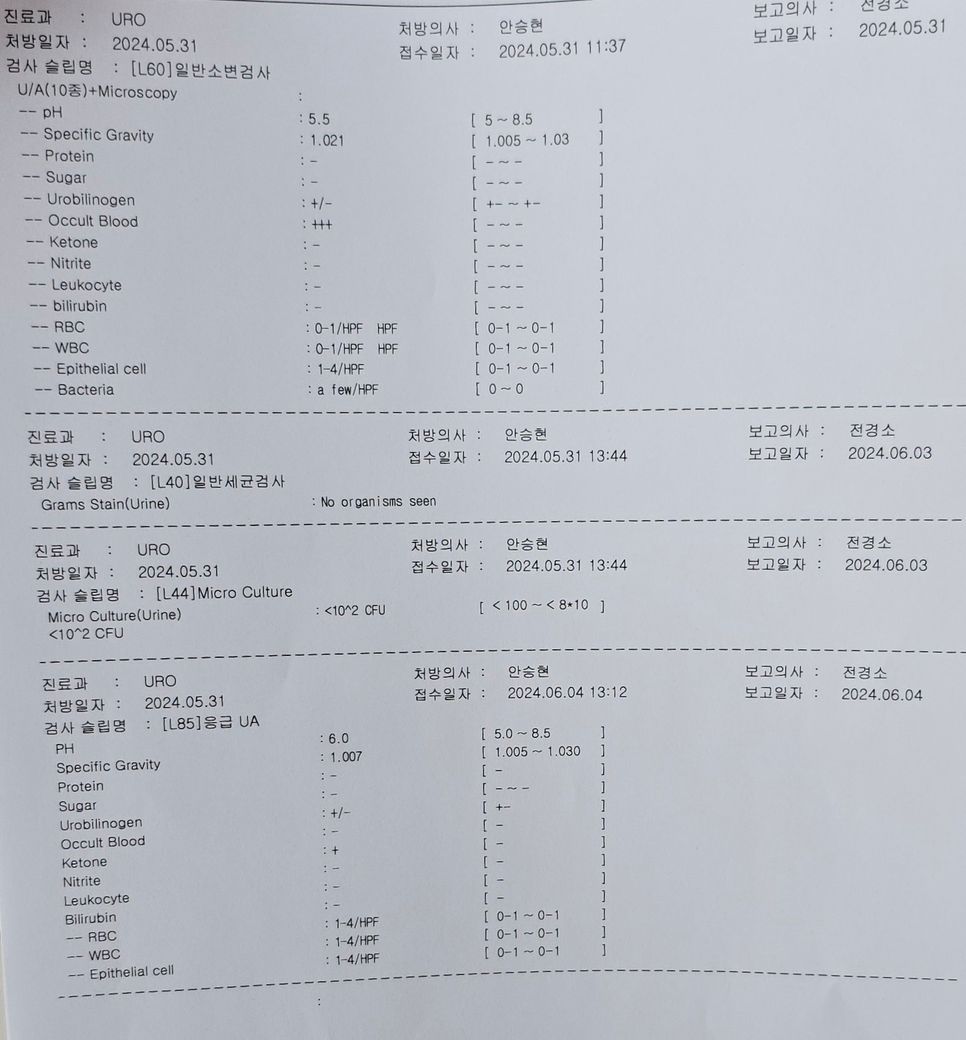 5월22일 방광염 증상으로 동네 비뇨기과에서 소변검사후