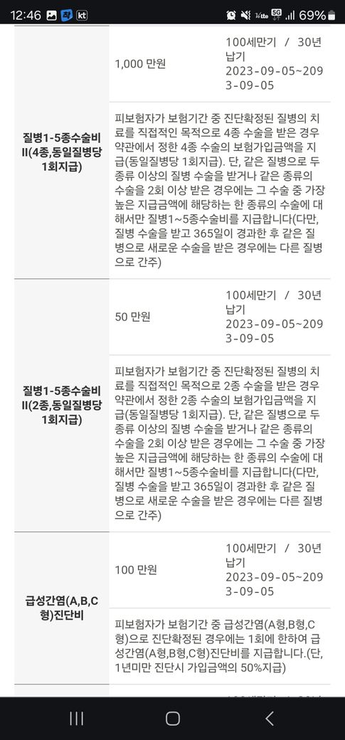 2023.09.05.에 가입하신 것으로 보이는데 해당 가입하신 상품의 보험약관 확인이 필수입니다. 해당 보험약관을 확인하려면 해당 보험회사 홈페이지( 또는 홈페이지 공시실)에서 보험약관을 다운로드 받아 확인하실 수 있습니다.