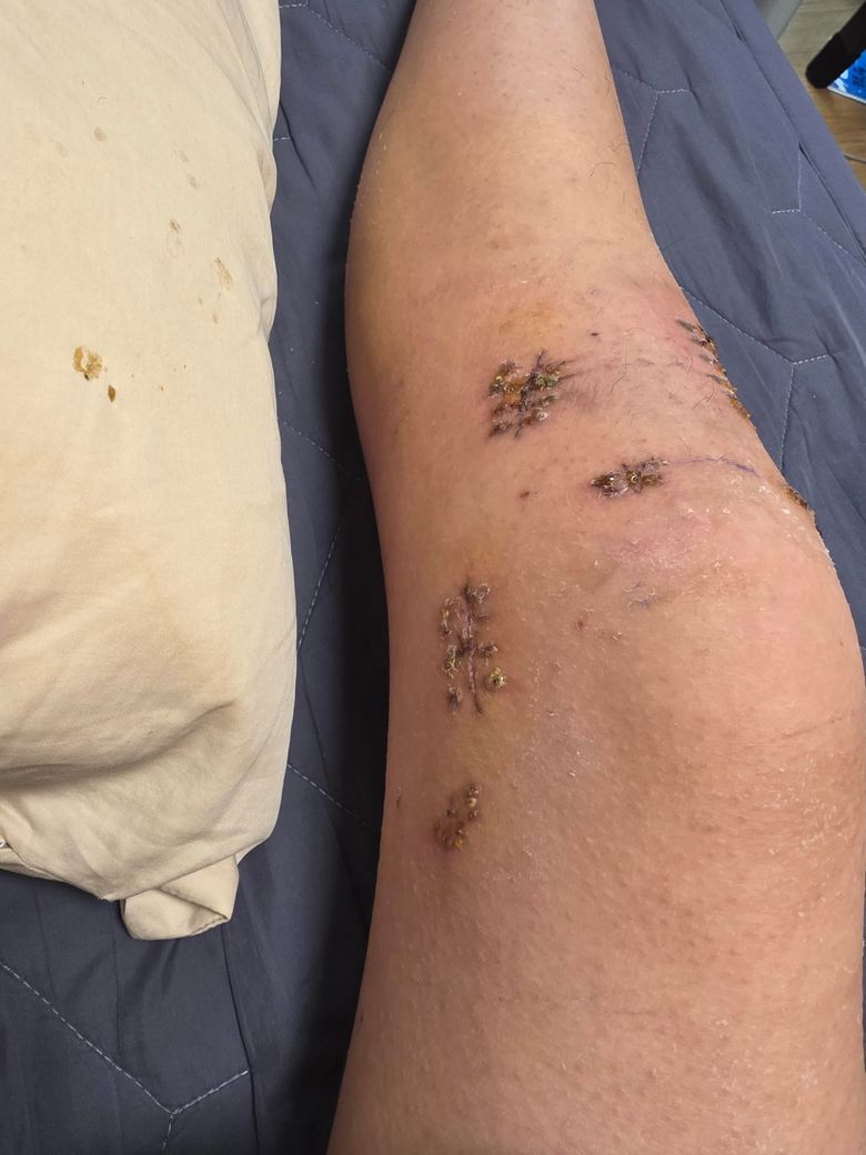무릎 수술 후 상처부위 진물이 나옵니다
