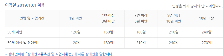 따라서 상한액으로 지급받으실것으로 보이며, 수급기간은 아래 표를 참고하시기 바랍니다.