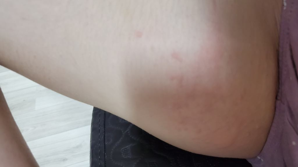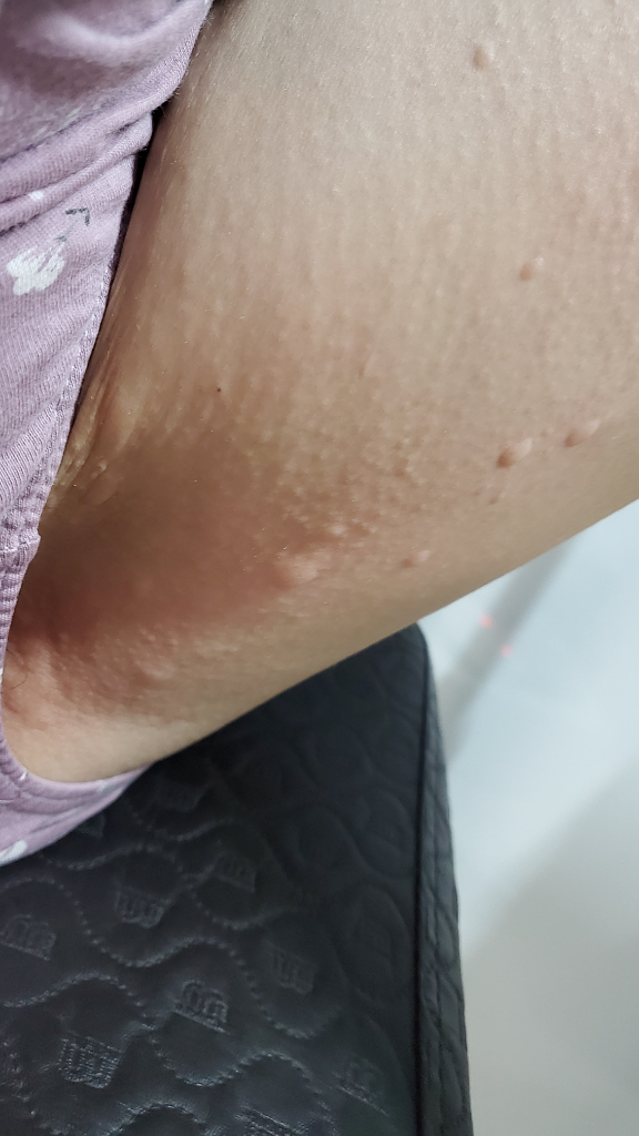 현재 사진만으로는 병변을 정확히 파악하기 어렵습니다. 하지만 두드러기는 감별하는 것이 좋겠습니다.
