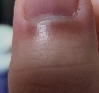 본인도 모르는 가벼운 외상이 있었을 수도 있으며, 손톱 뿌리 부분의 병변이 있을 수 있기 때문에 우선은 피부과에 내원하시어 손톱병변의 가능성에 대해 진료를 받아보시는 것을 추천드립니다.
