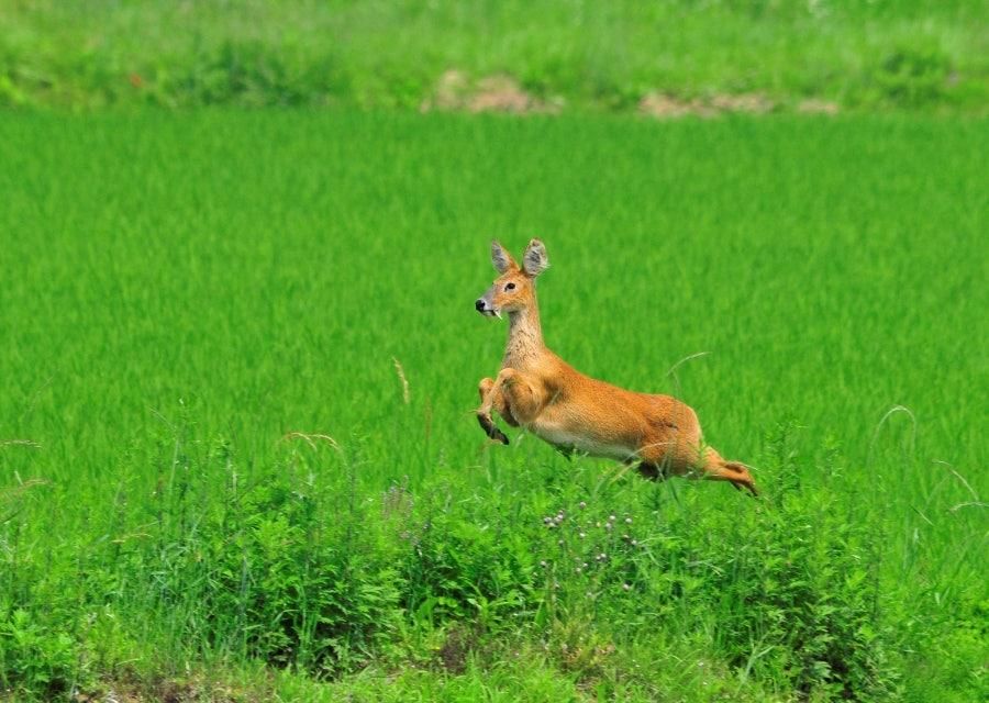고라니는 우리나라에서 흔히 볼 수 있는 중형 포유류로 몸길이가 약 80~100cm 정도로, 수달보다 몸집이 큽니다.