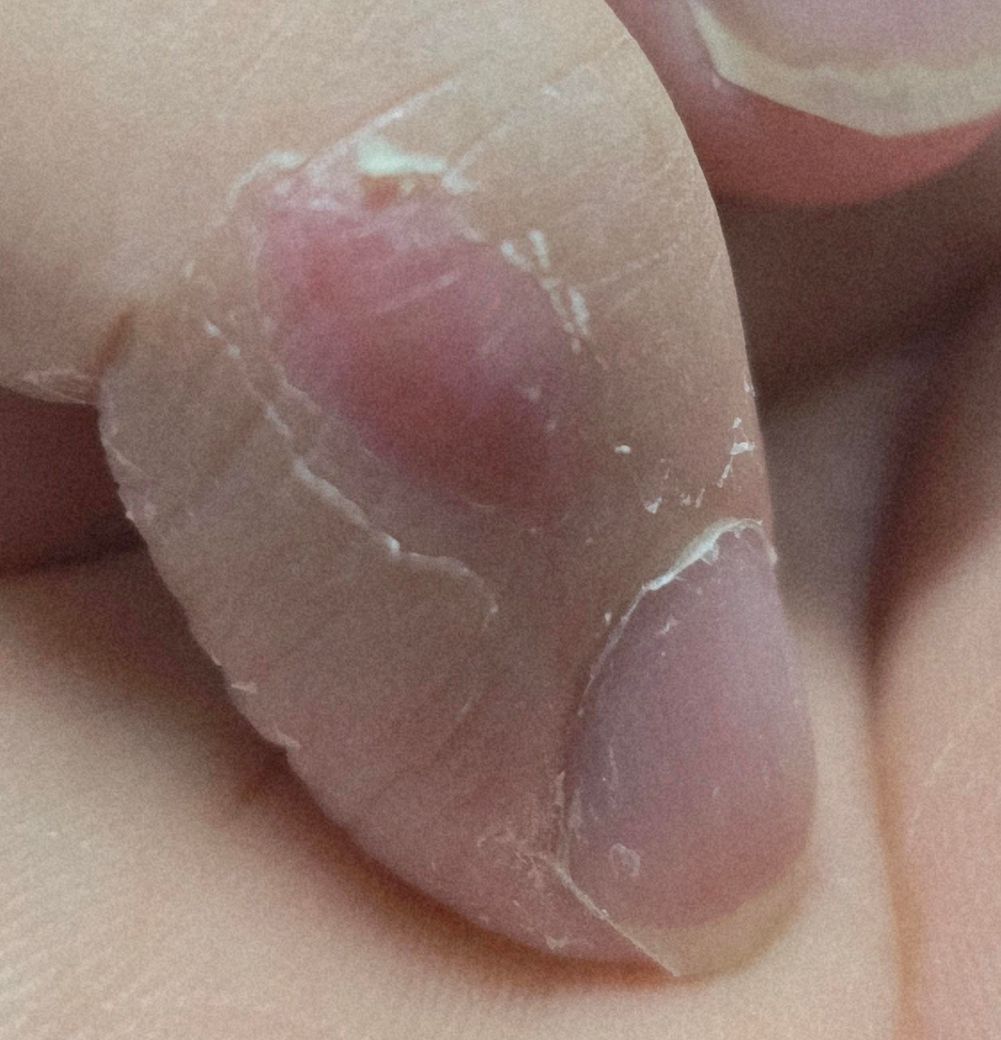 그런데... 실밥이 완전히 뽑히지 않고, 일부가 손가락 내에 남았다고 했습니다.