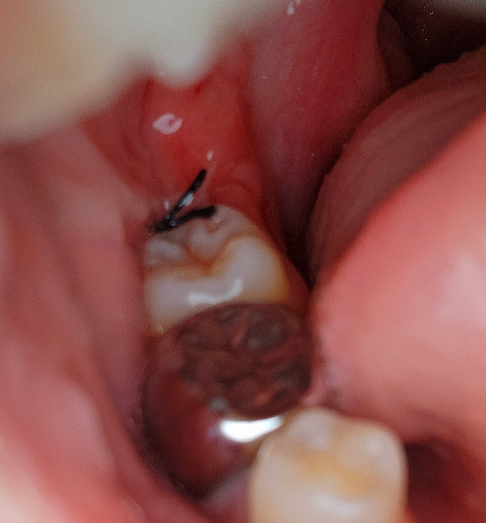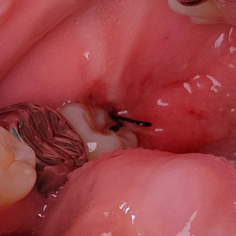 발치하고 나서는 잇몸이 부엇을때 실밥으로 꼬메기 때문에 붓기가 가라 앉으면 저렇게 보일수 있습니다. 문제가 잇는건 아니니 너무 걱정하지마세요.