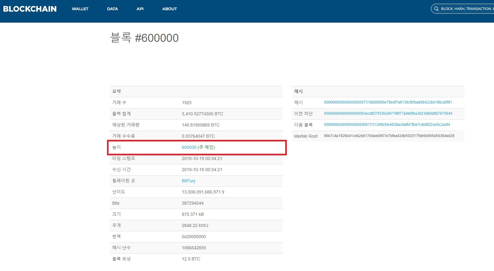 즉, 블록 고도가 60만에 달했다는 말은 현재 비트코인의 600,000번째 블록이 생성되었다는 말과 같습니다.