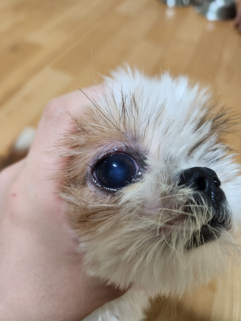 시츄 이제 1살된 강아지인데 눈이 오늘 보니 살짝 왼쪽눈이 살짝 어두워진거같은데 병원 가봐야 하나요 오른쪽은 괜찮은데 왼쪽만 그런거 같아요