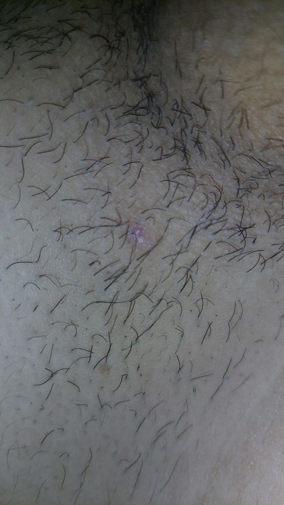 동성애자입니다. 한 달 전 다른 남성과 구강성교를 주고받았고 사정은 없었습니다. 지난 주에 위쪽 사진과 같이 사타구니에 병변이 하나 생겼고, 아래 쪽은 현재입니다. 그 이외 성기 및 항문, 구강에는 육안으로 식별할 수 이는 병변이 없습니다. 위 병변이 헤르페스 또는 곤지름일 가능성이 있나요?