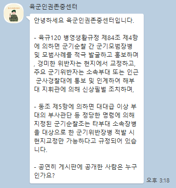 다음날 전 군이 볼 수 있는 게시판에 계급, 소속, 실명, 얼굴이 나오는 사진을 게시.