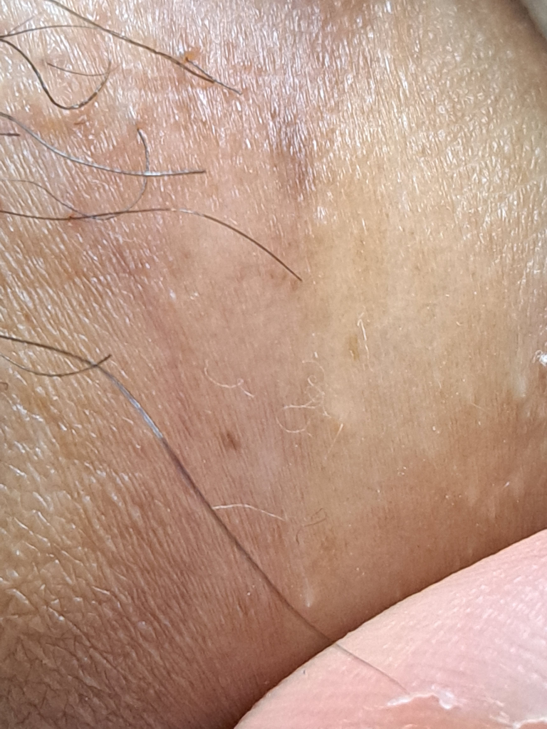 나머지 점들은 모양도 균일해서 걱정이 크게 안되는데 이 두개 점은 점인지? 잘 모르게 생겨서 이렇게 질문 올립니다. 혹시 악성종양인지, 아니면 곤지름일수도 있는지 확인 부탁드립니다.