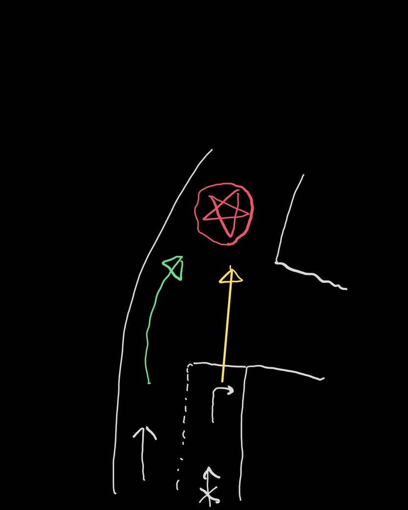 아래 그림과 같이 초록색 차량과 노란색 차량이 서행중에 빨간 별표지점에서 사고가 났을경우, 과실이 어떻게 되나요? 속도는 10km/h 에 서로 양보 안하는 상황에서 빨간지점에서 사고난 경우 입니다.
