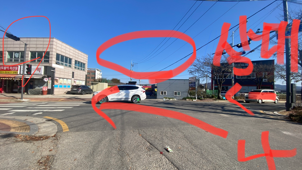 1. 좌측 신호만잇는 교차로에서 좌측 교통신호 적색 확인 후 진입