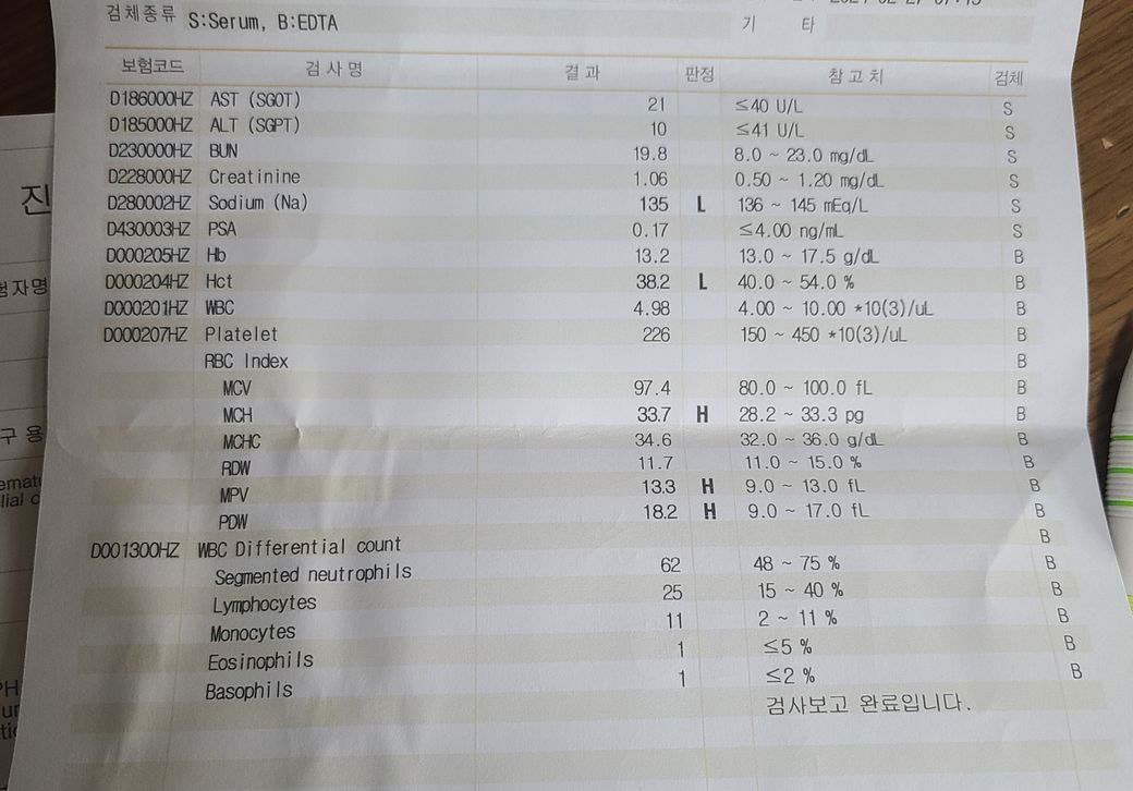 전립선비대증 비뇨기과 정기 피검사 소변검사 결과 내용이 궁금합니다
