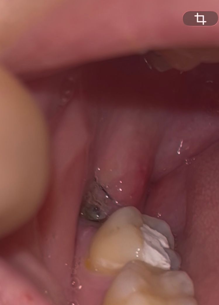 근데 먹고 양치하고 확인해보니 사랑니 발치한 자리에 흰색으로 뭐가 낀 것처럼 되어있습니다
