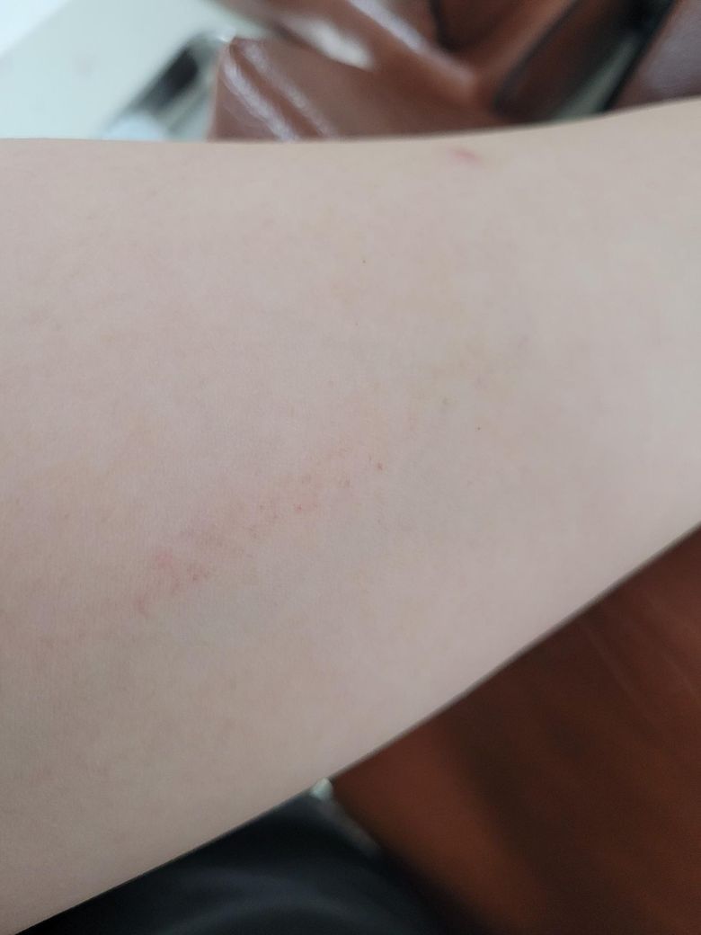 오늘 자고 일어났는데 팔에 이렇게 뭐가 올라왔습니다.