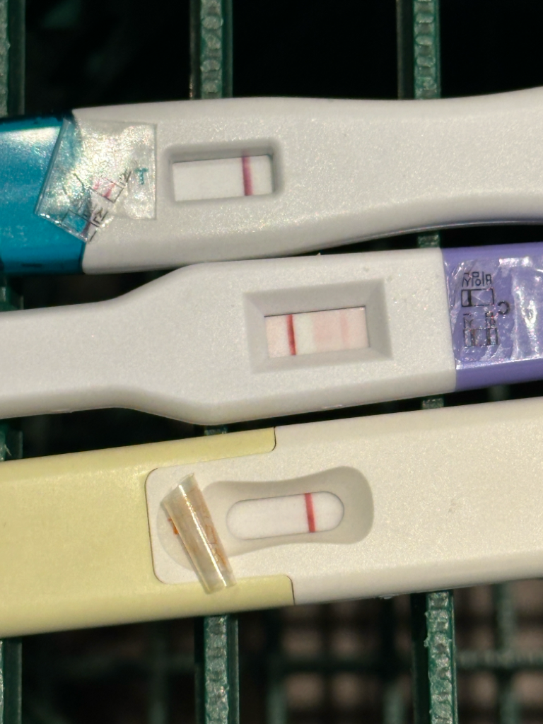 파란색 임테기에서 아주 흐린 선이 10-20분 후에 나타나 보라색 임테기를 사용했고 20-30분 후 더 진한 흐린 두줄이었습니다