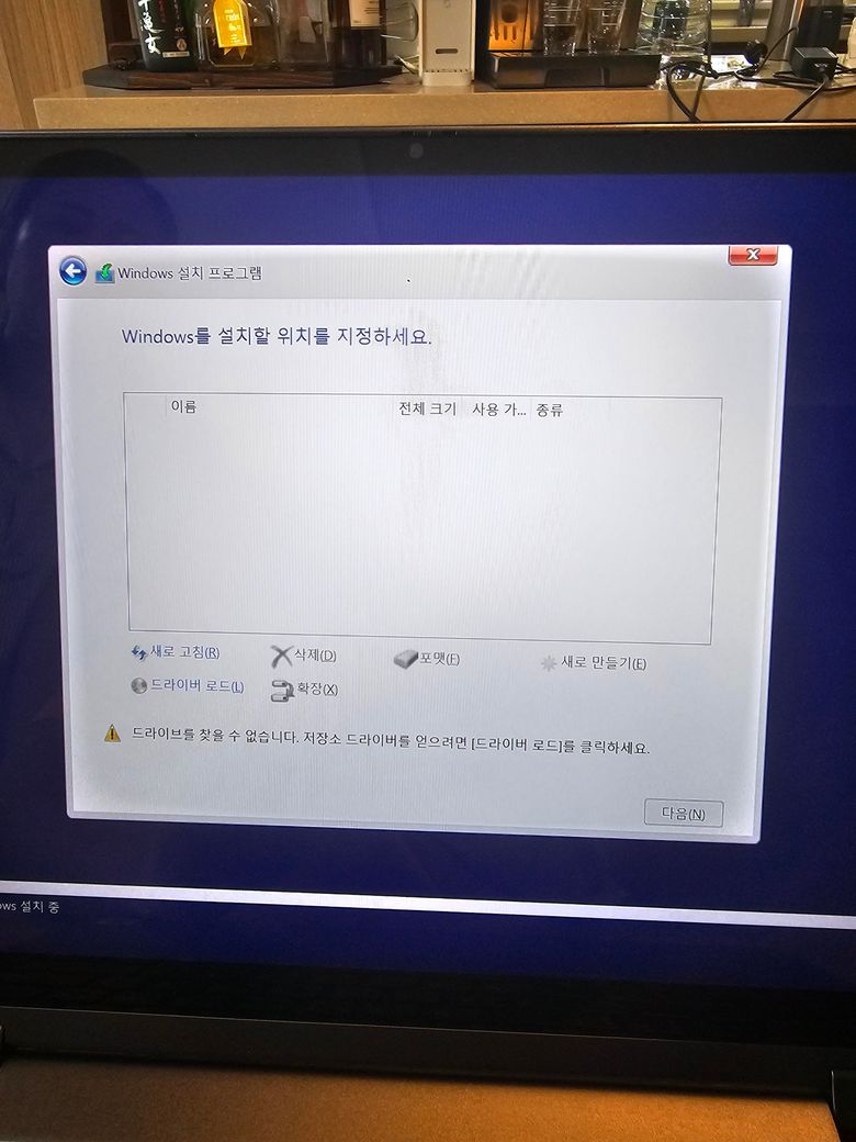노트북에 윈도우 11을 설치했는데 처음엔 잘 사용이 되다가 갑자기 사진 1번 2번과 같은 에러 메시지가 떠서 부트 메뉴에 진입하니 윈도우가 표시가 안됩니다 그래서 부팅 USB로 새로 윈도우를 설치하려고 하니. 드라이브 표시도 안 나오네요. 이거 왜 이럴까요? 해결 방법 알려주세요