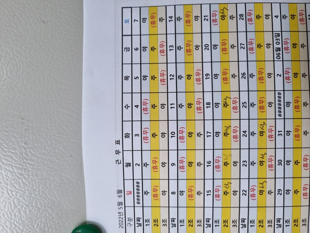 사진에 보면 B조가 5월 1일 ,8일이 휴무일이랑 공휴일이랑 겹칩니다.